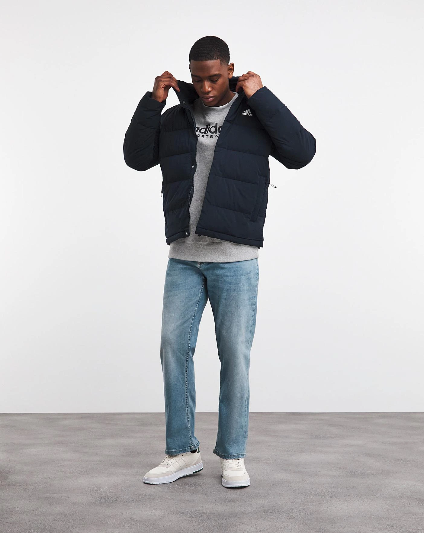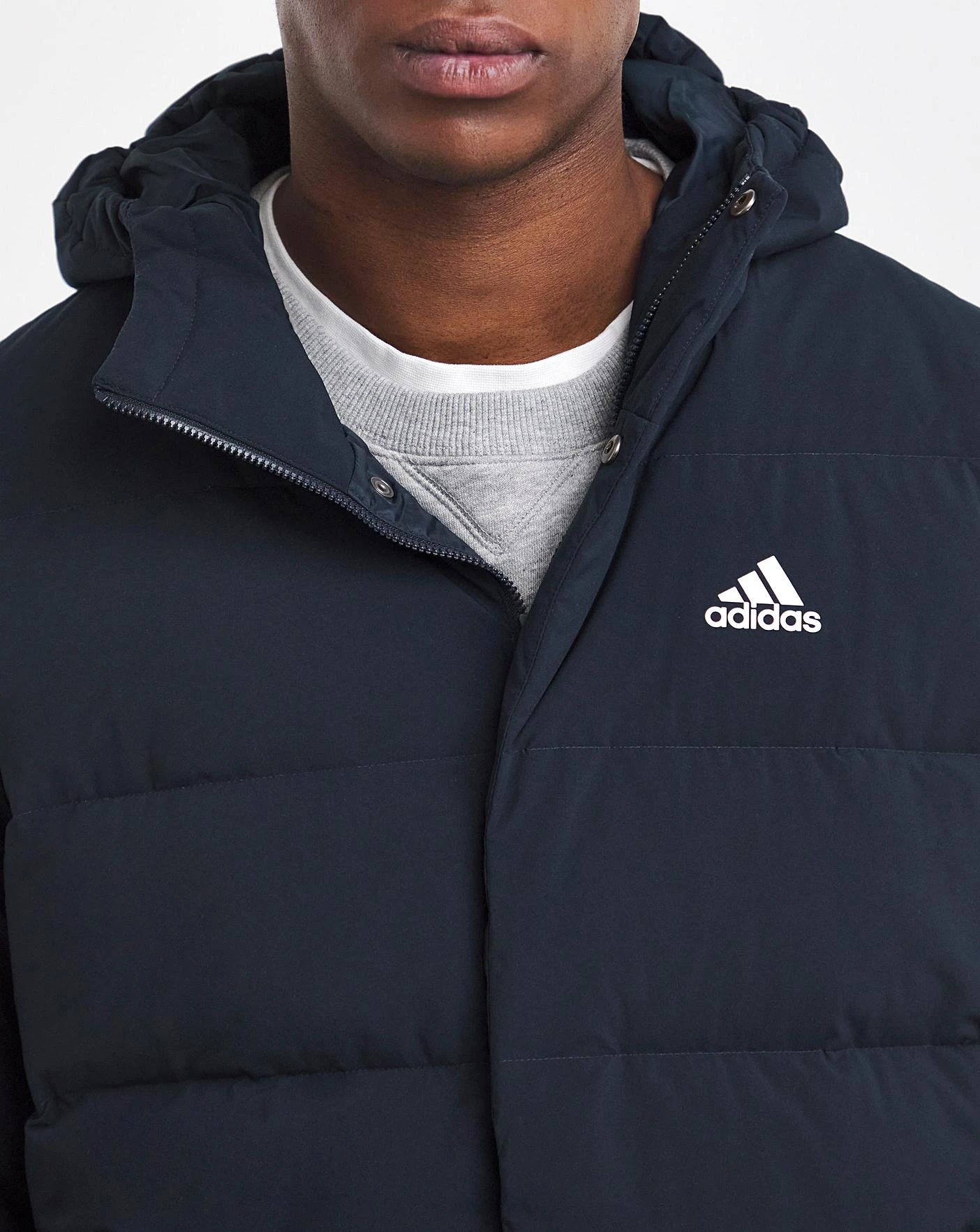 Ah, the timeless style and the unmatched comfort of down. For cold winter days, this adidas down jacket offers go-to warmth that you can feel as soon as you zip it up. Elastic cuffs and an adjustable hem seal in heat for the comfort to get you through winter. Pull up the hood for the ultimate in cosy coverage. Zip pockets keep hands warm and your keys or phone within easy reach.