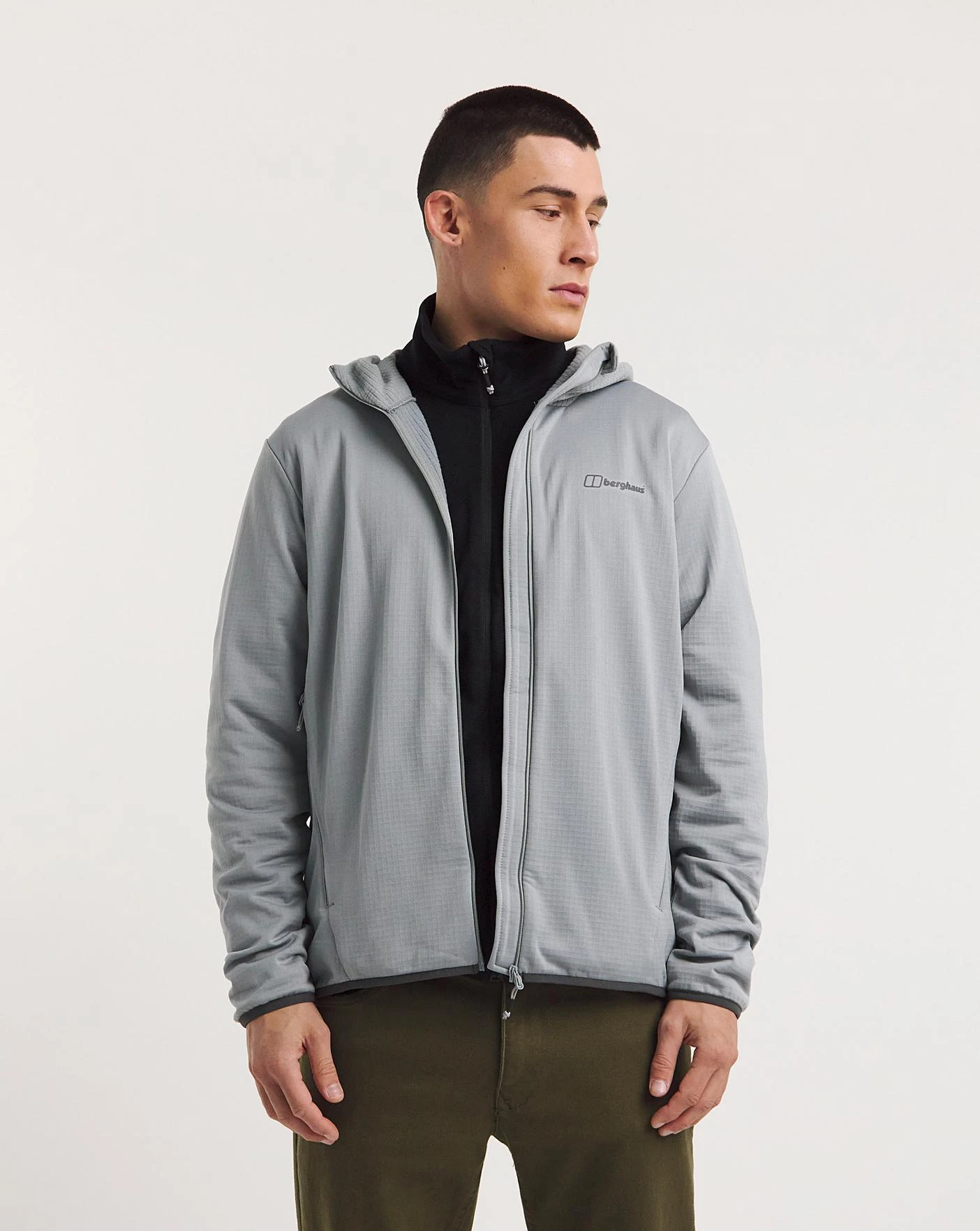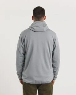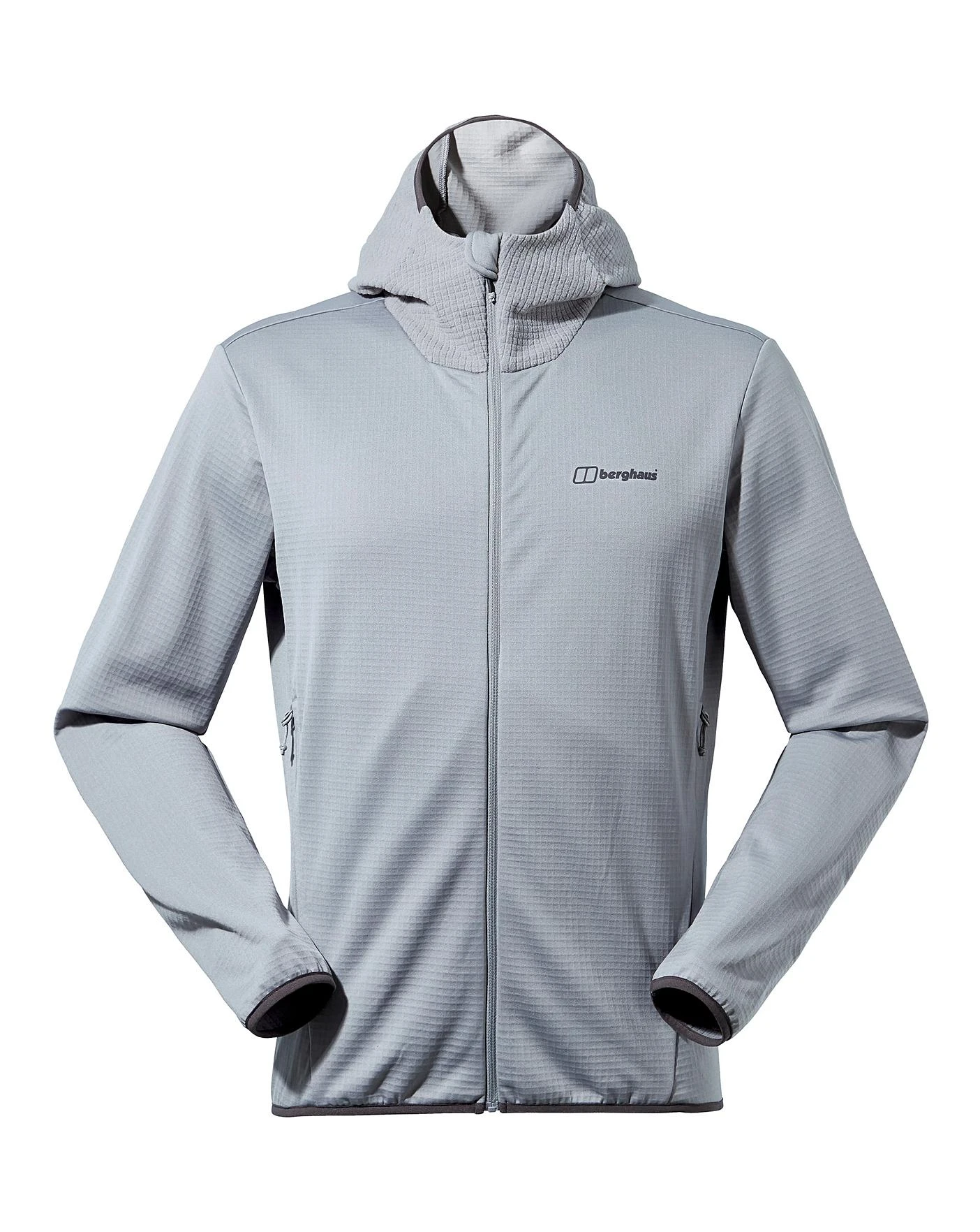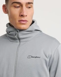 Whether its sunny, breezy or cant decide, this great looking, hooded mid layer is a top choice. Arm yourself with its easy going knit fleece, boasting stretch bound hems for comfort and detail. Even better, two handy zipped pockets make sure mobiles and a wallet stay put whether youre striding up a hillside or gorge scrambling. For cooler days a snug fitting hood is a real bonus and the full front zip and neat, soft chin guard that stops scratchy zips are the icing on the energy bar.