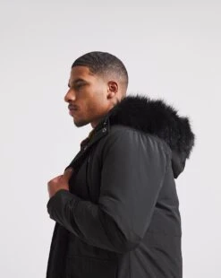 Packed with insulation the mens Premium Parka Jacket offers ultimate protection whether you are walking around town or down a country road. It features a warm fluffy faux fur trim around its hood. Hoods with fur decrease the amount of heat lost, thus keeping your face and you warmer. It also features hand pockets and a full zip fastening so it can be easily adjusted to suit your preferences.
