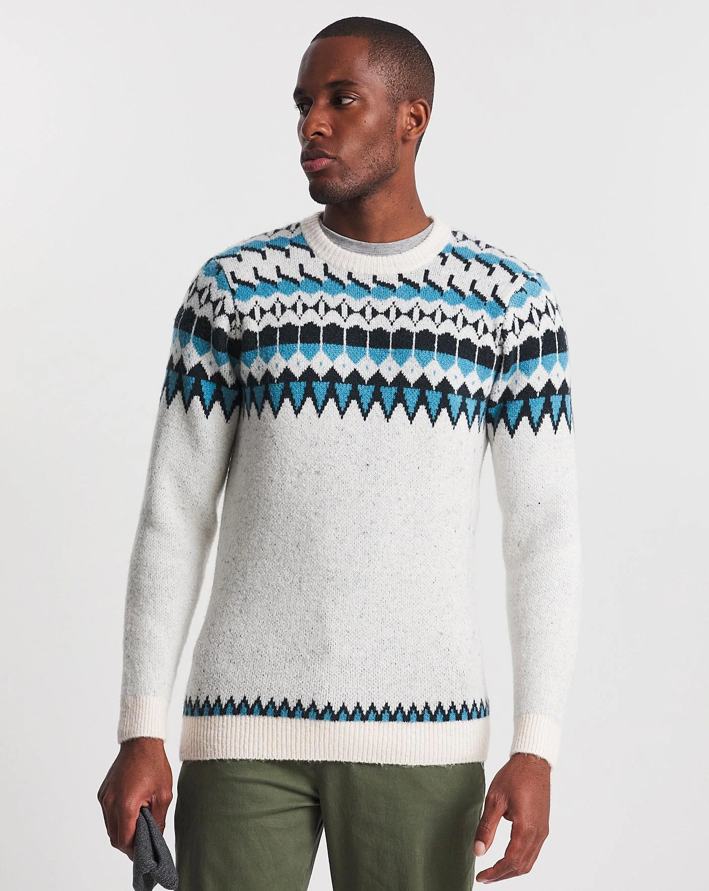 Stay warm this winter with this fairisle jumper. Featuring a crew neck and panelled fairisle print, it’s perfect for the Christmas festivities and casual days off.