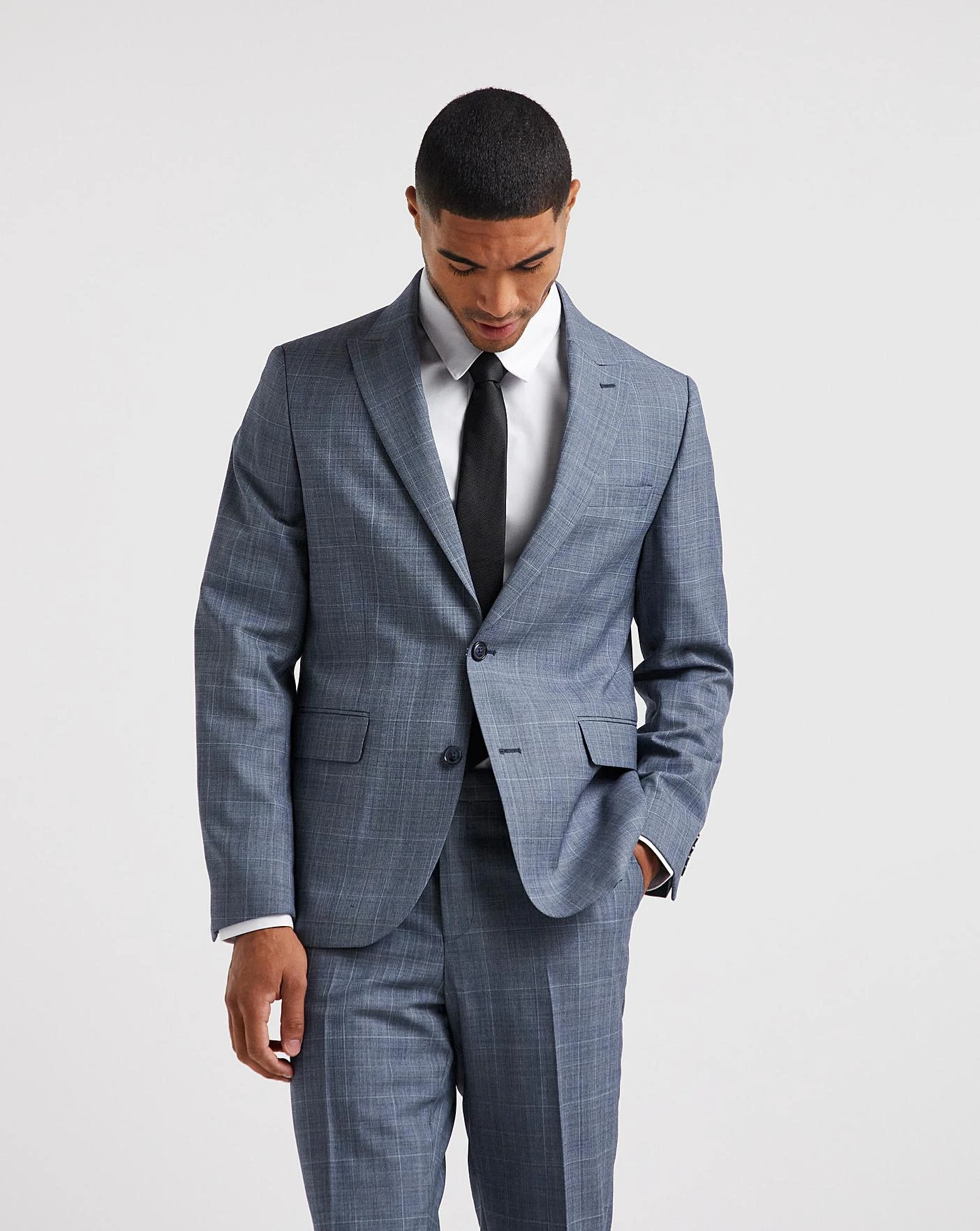This Windowpane Check Suit Jacket in blue and in a regular fit is smart and fresh for this season. Featuring recycled care labels and a hanger, this jacket paired with the suit trousers is an essential.