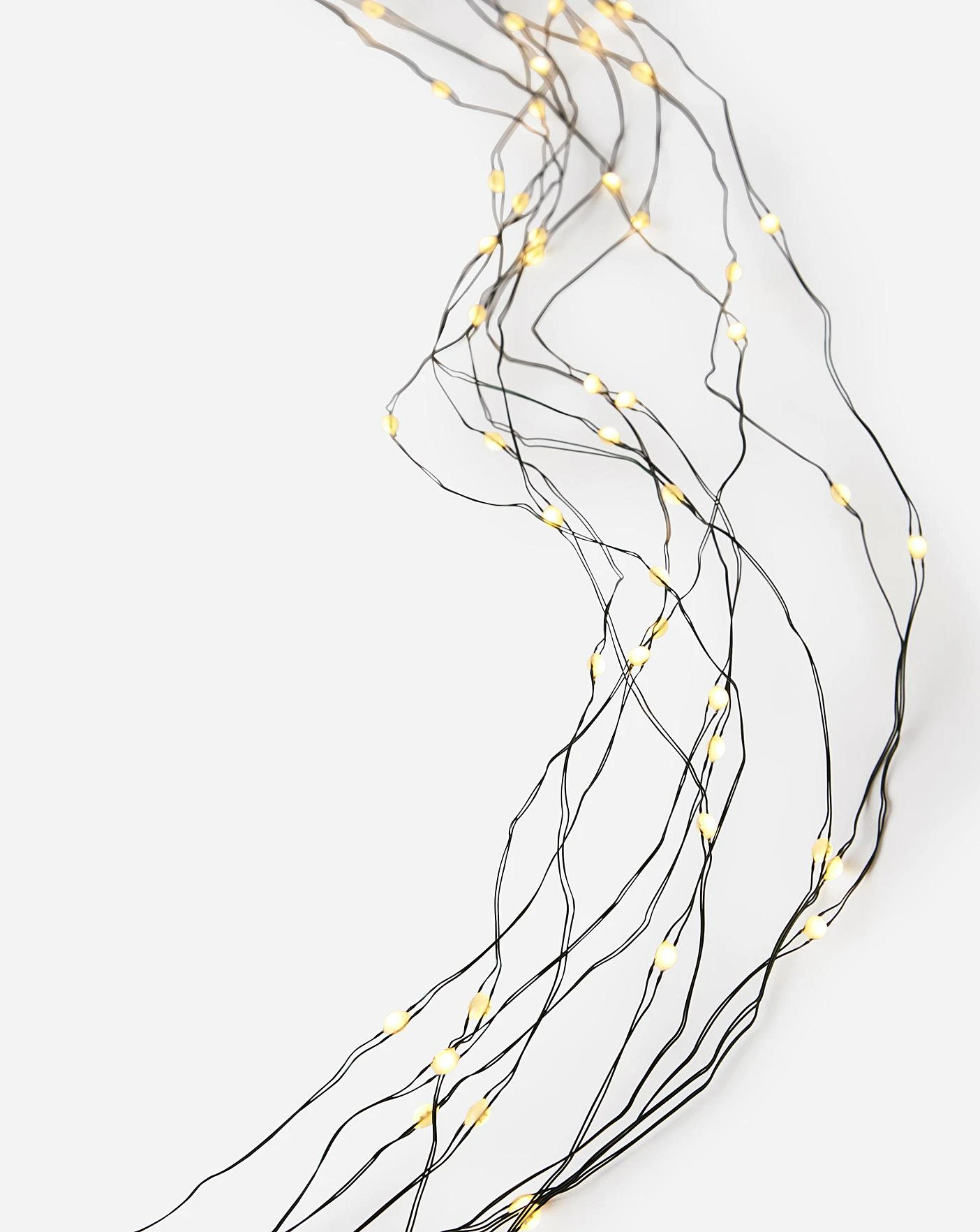 200 Warm White LED UltraBrights waterfall lights. Tree ring attachment that slots over the top of the Christmas tree allowing the light strings to cascade down. Multi-action with 8 light settings including static. Suitable for use indoors or outdoors. 1 year manufacturer guarantee