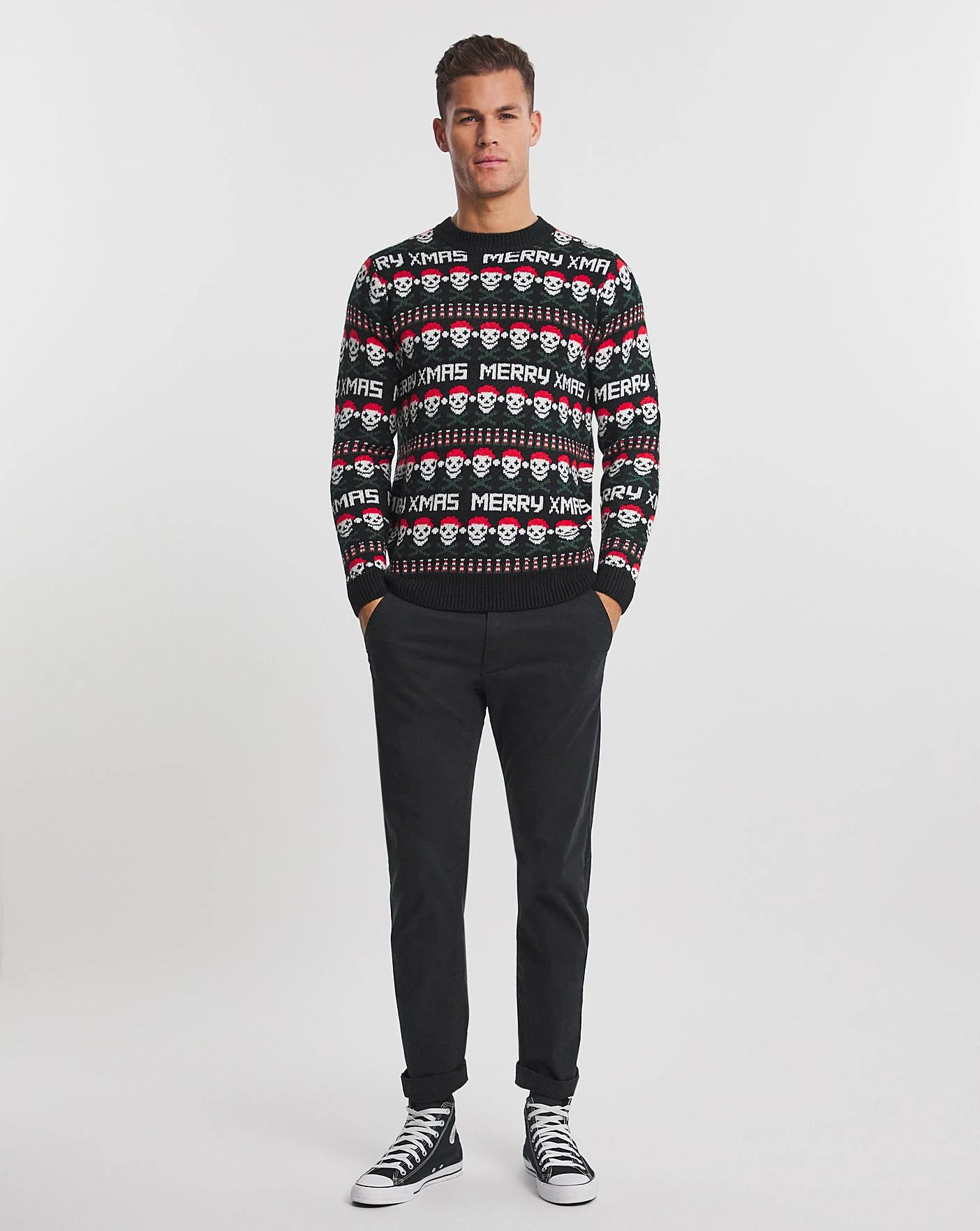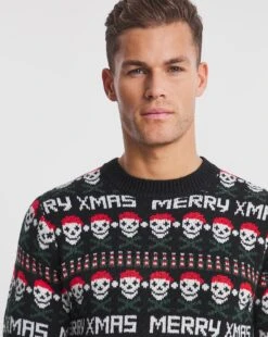 Get into the festive spirit with this christmas jumper. Featuring a graphic skull fairisle print, it’s perfect for the Christmas festivities and more!