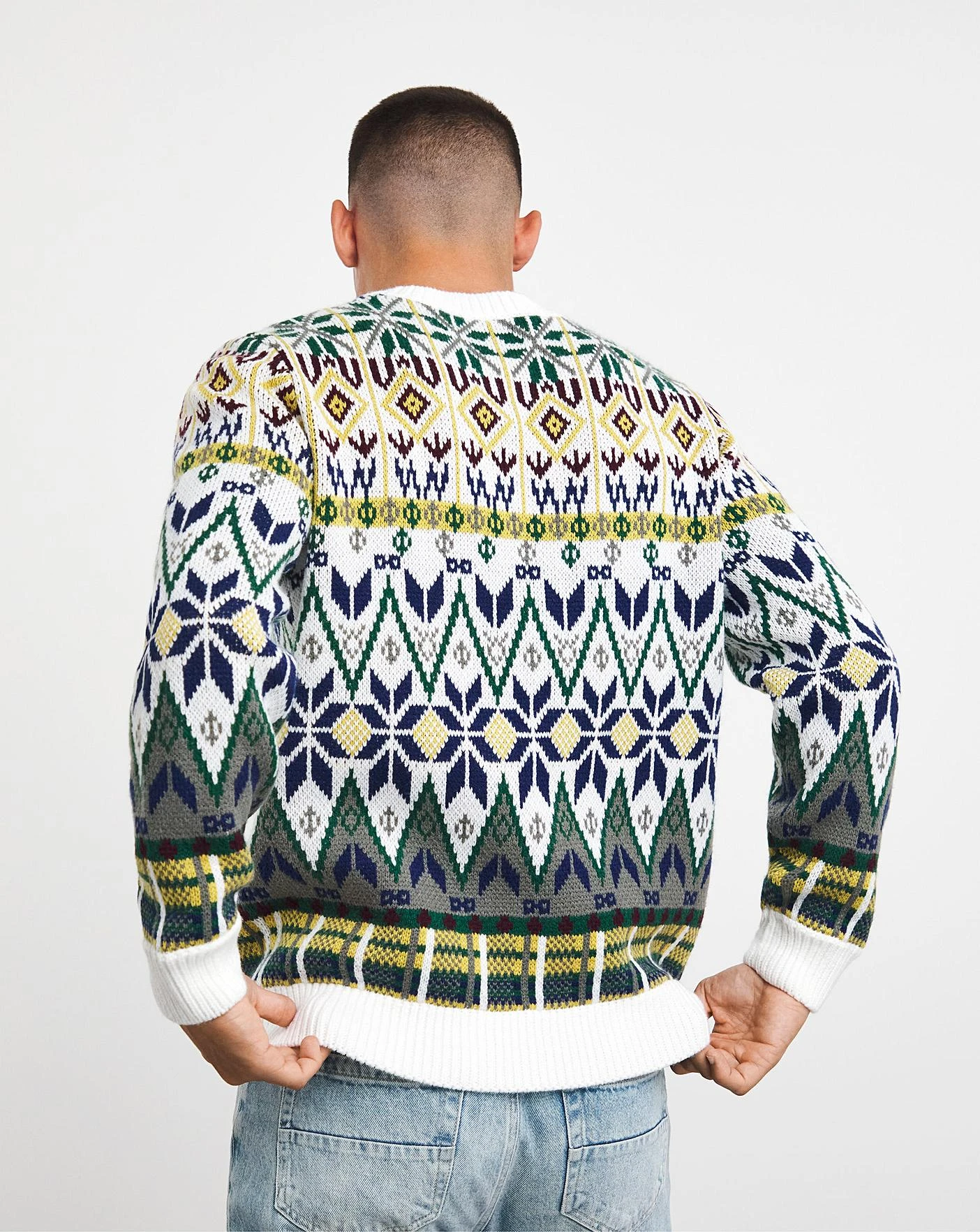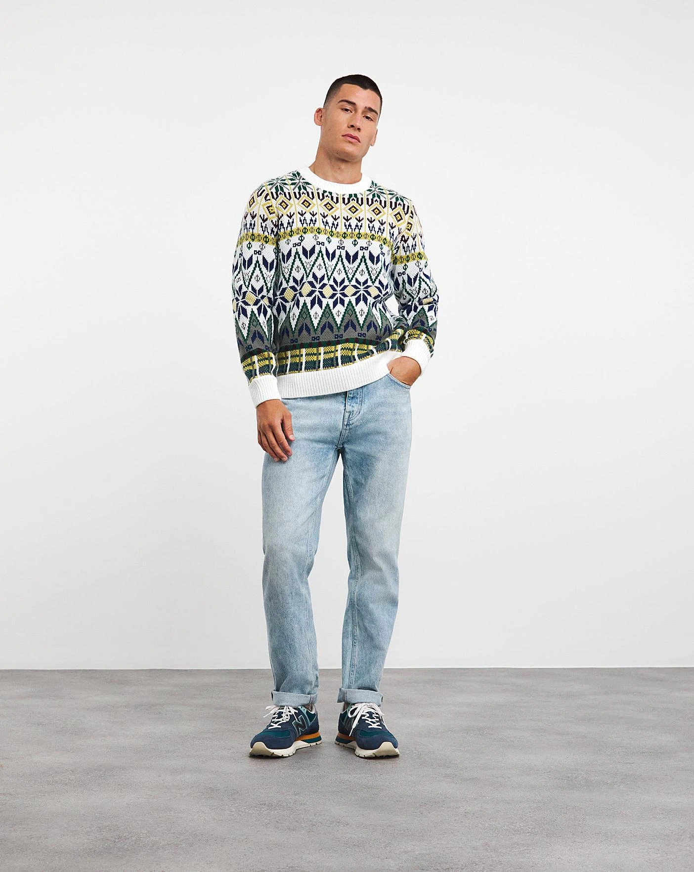 Designed in a timeless crew neck, the Jacamo Fairisle Jumper is a festive must-have. Celebrate in style this season with this cosy and stylish jumper. Ideal for all festive events, this jumper features a ribbed collar, cuffs and hem. This is the perfect option for you a stylish, yet festive Christmas jumper this season.