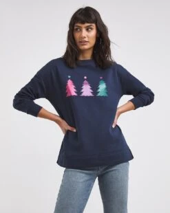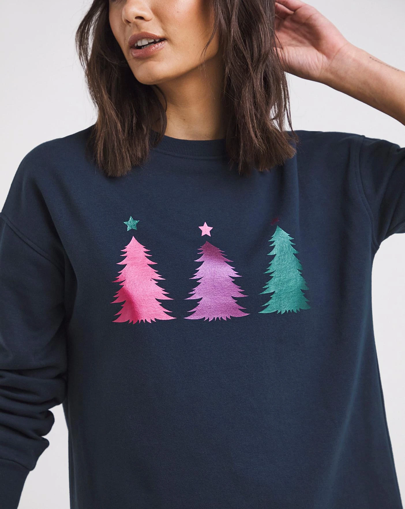 Say hello to Christmas with our adorable Christmas Tree sweatshirt. Feel both festive and comfortable in this super soft jersey fabric and relaxed fit sweat. The foil print trees add a touch of glamour to your outfit, and is perfect for any Christmas party or celebration. Simply pair this amazing sweatshirt with your favourite jeans and elf shoes!