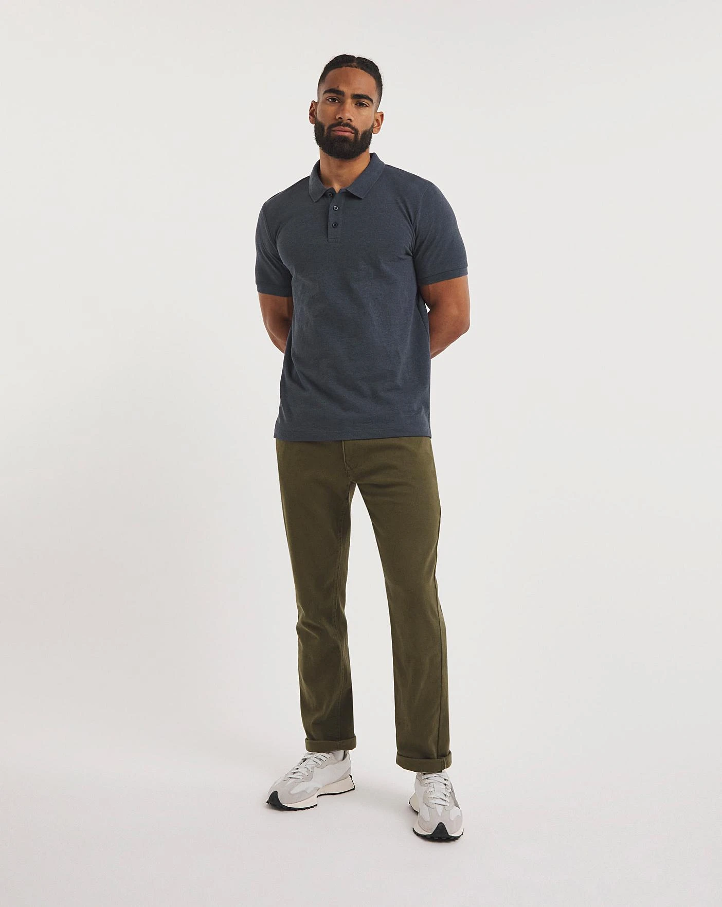 The denim marl pique polo comes in a long length, and can be worn casually with jeans or paired with tailored pants for any formal occasion! Sustainably sourced cotton.