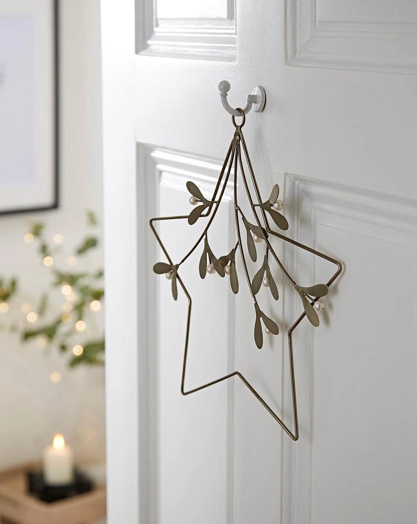 Ivyline galvanised star mistletoe wreath is made of metal and Glass with hand painted detail. Indoor use only. Wipe clean with a damp cloth.