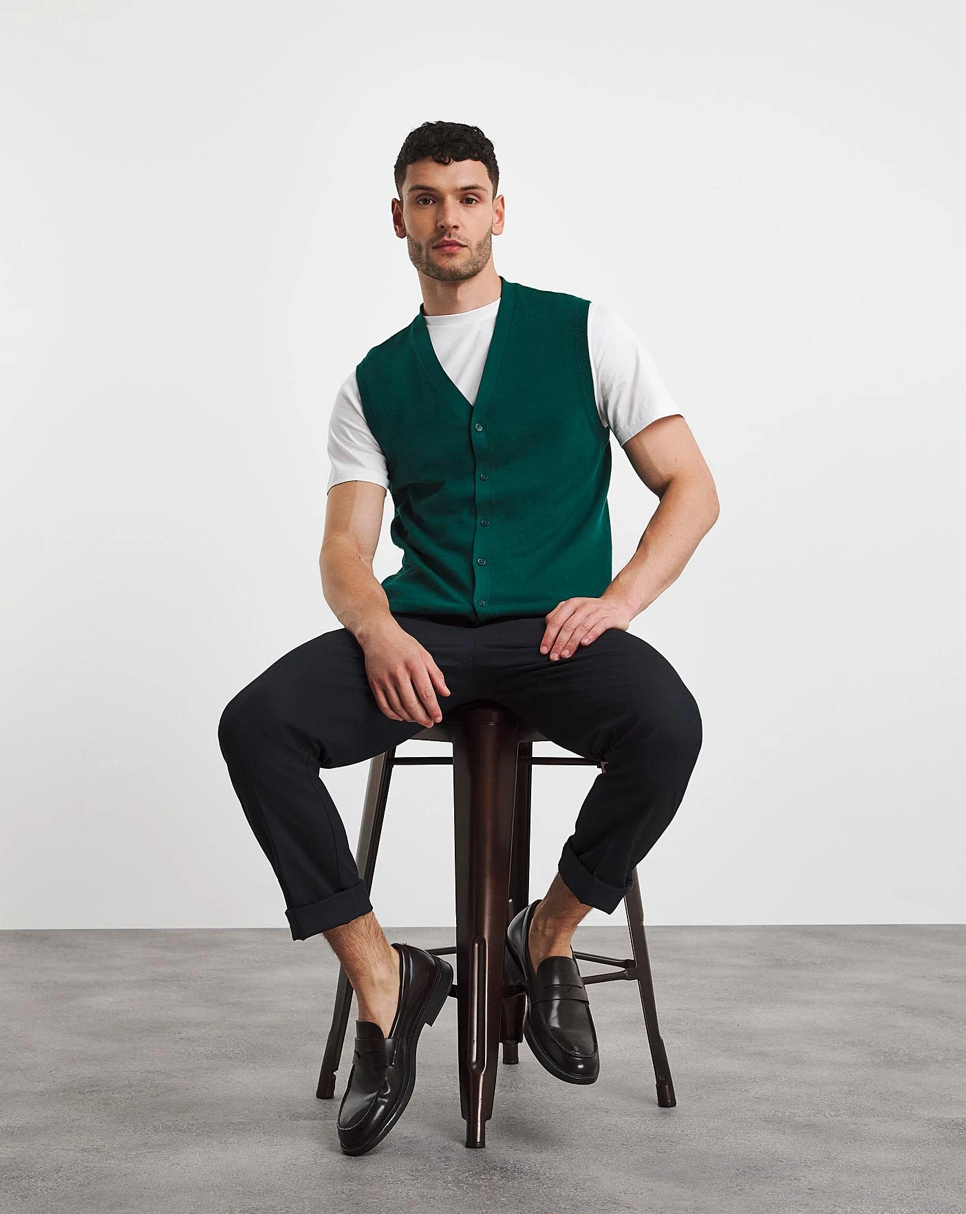 A new basic for you to add to your wardrobe. Jacamo’s cotton button up sweater vest in green is the perfect layering piece. Wear it casually or smart, you decide! By choosing to shop BCI cotton your supporting Jacamo’s investment in Better Cottons mission. This product is sourced via system of mass balance and therefore may not contain Better Cotton.