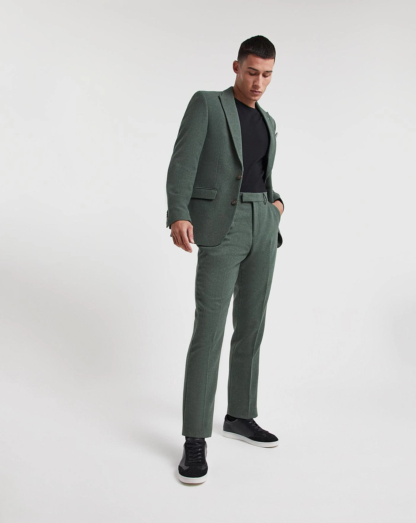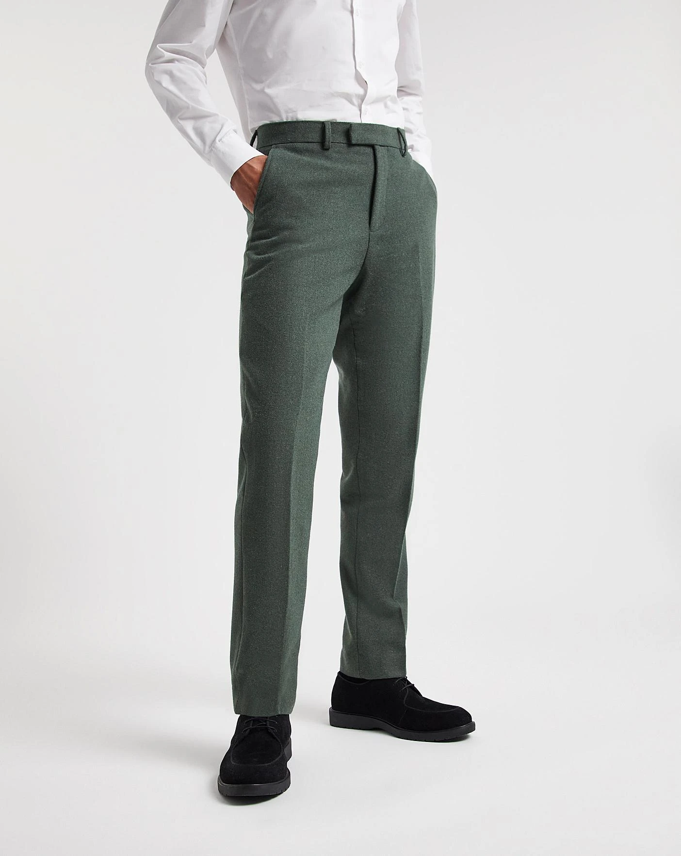 This green donegal tweed suit trouser is fresh and stylish for the season. Pair with the matching suit jacket for a high quality yet trendy look for any occasion this season.