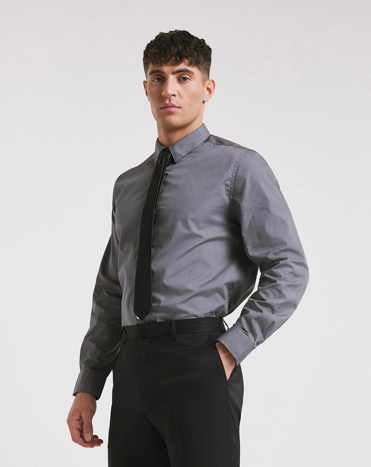 This long-sleeved plain shirt is perfect for any formal event. Finished with a button front fastening and button cuffs for extra movement and comfort.