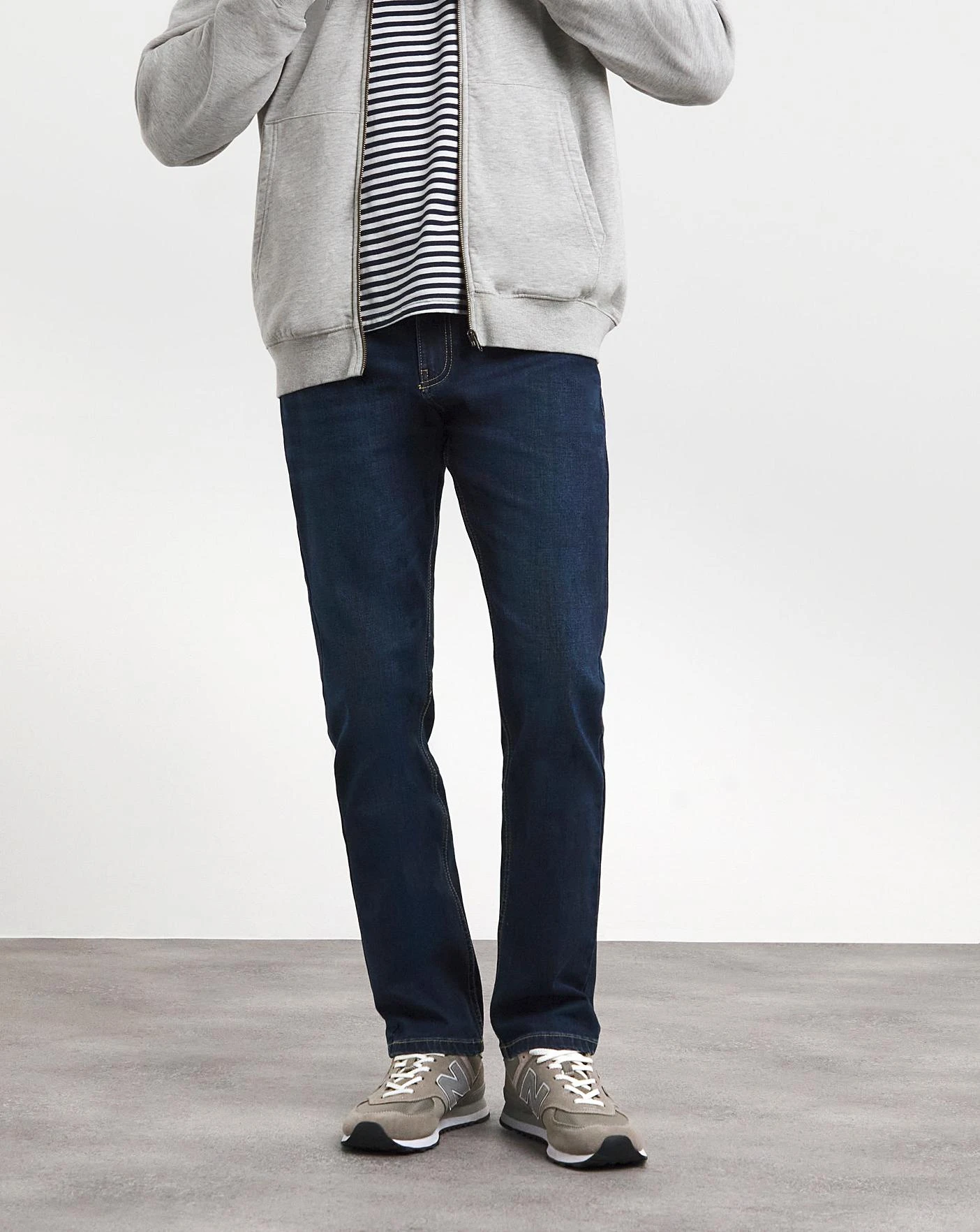 New and improved fabric. Straight fit stretch jeans with five pockets and a zip/button fly fasten. Made with REPREVE recycled polyester, including recycled plastic bottles. Recycled Consumer Waste.