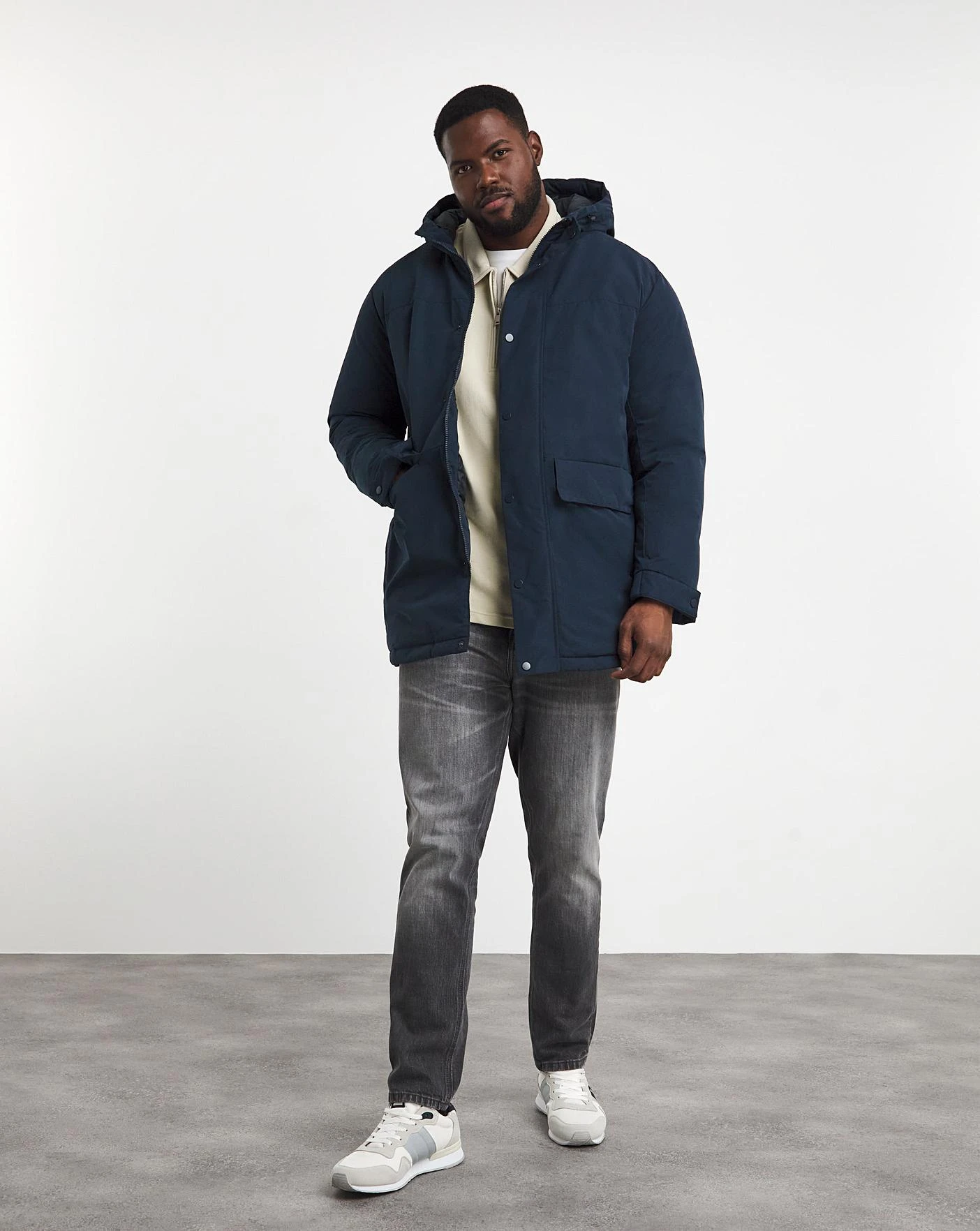 The Jack & Jones Champ Parker Jacket in Navy Blazer, the must have jacket for this season. Model wears a size 1XL