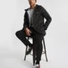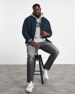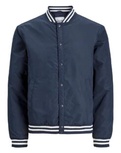 The Jack & Jones Warrior Bomber in Navy Blazer- add this to your wardrobe this season for a stylish but comfy and warm look Model wears A size 1L