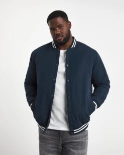 The Jack & Jones Warrior Bomber in Navy Blazer- add this to your wardrobe this season for a stylish but comfy and warm look Model wears A size 1L