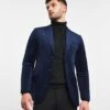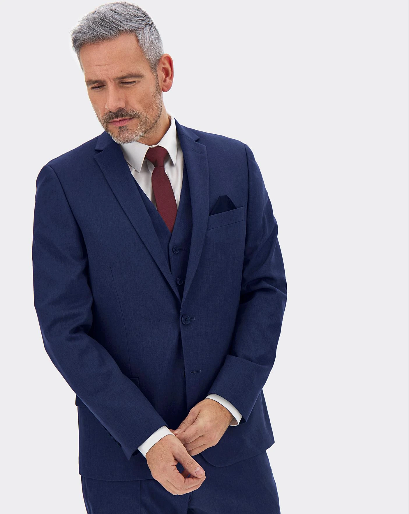 Suit jacket featuring two button front-fastening, centre back vent, two flap hip pockets, one chest pocket and two inside pockets, one of which is a button fastening.