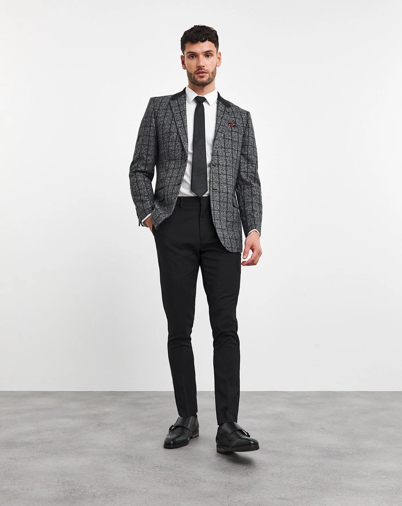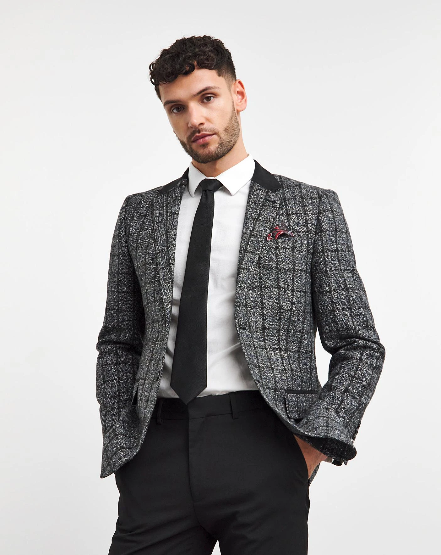 Joe Browns Suit Jacket in Grey Check . Features a clean notch lapel, with a two button fastening. A timeless style to simply pair with the matching Trouser and Waistcoat for the full suit. Team with a Joe Browns Shirt and Shoes to complete the look. Find your best fit with size options in Short, Regular and Long. Model is wearing a 40 Jacket