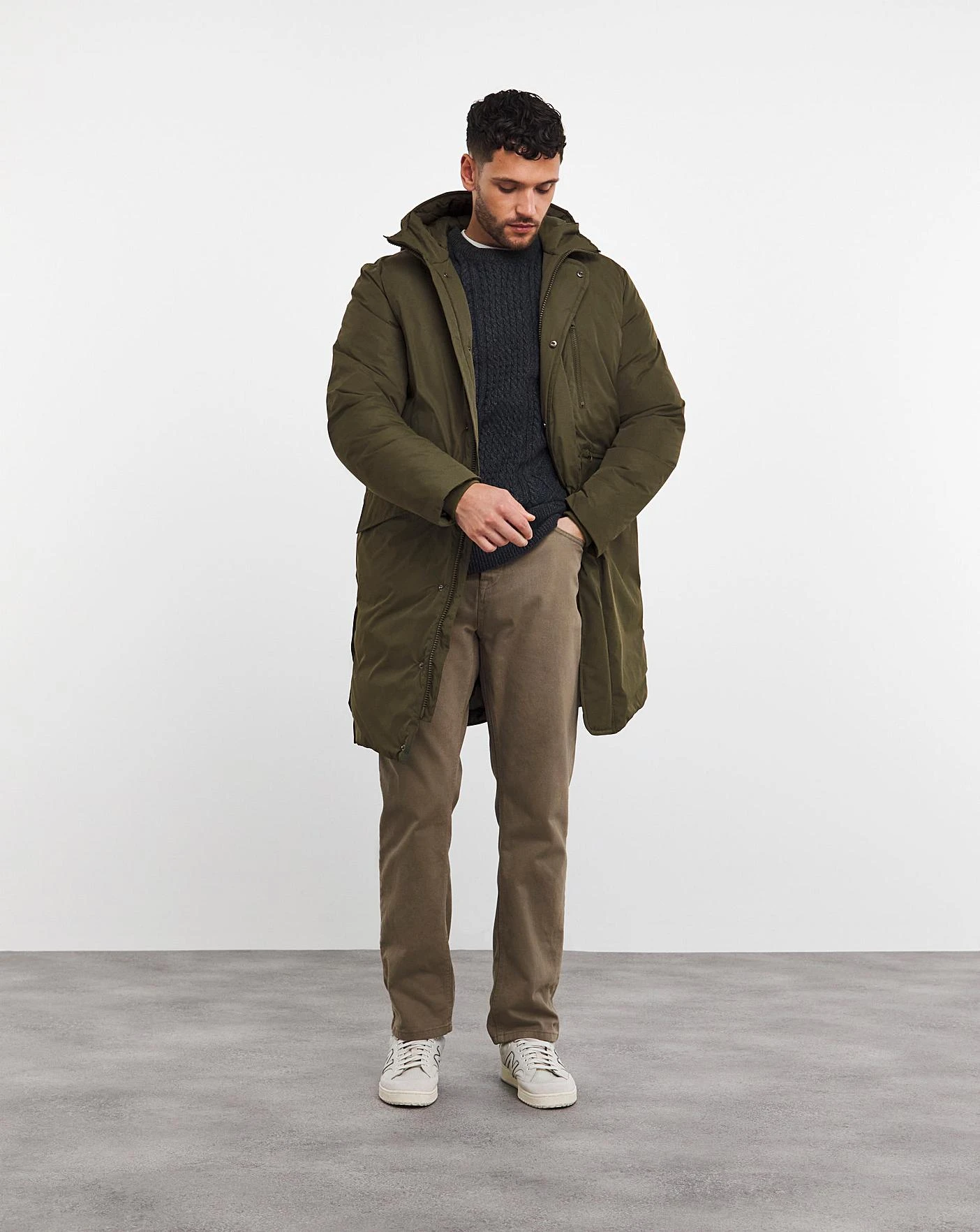 This Jacamo Padded Parka with a Hood in Khaki is the perfect addition to your Winter wardrobe. This Parka is internally padded so it will keep you warm throughout the colder months whilst elevating your whole look. Designed with a hood, pockets and a full fastening zip – this Parka is the coat for this season.