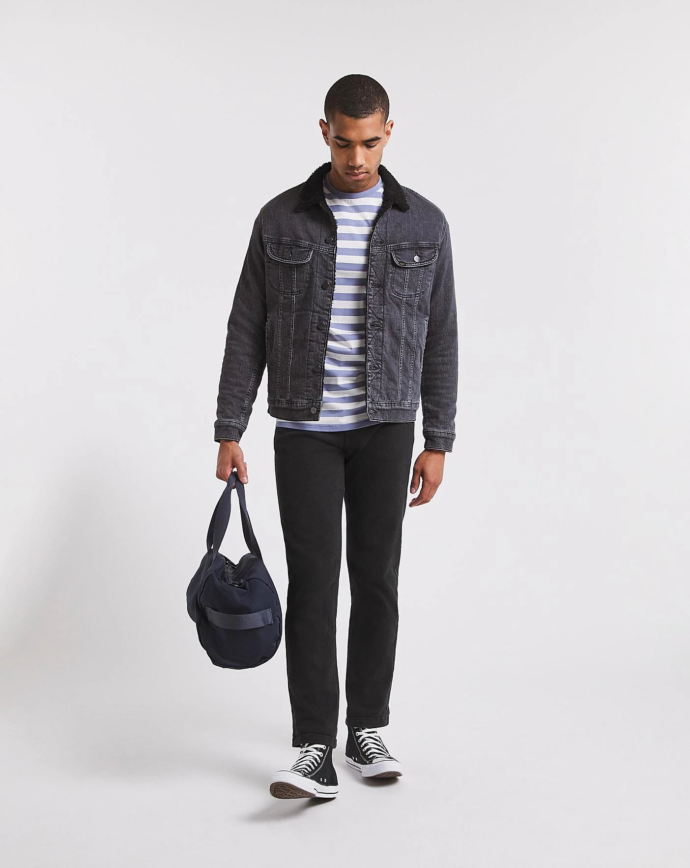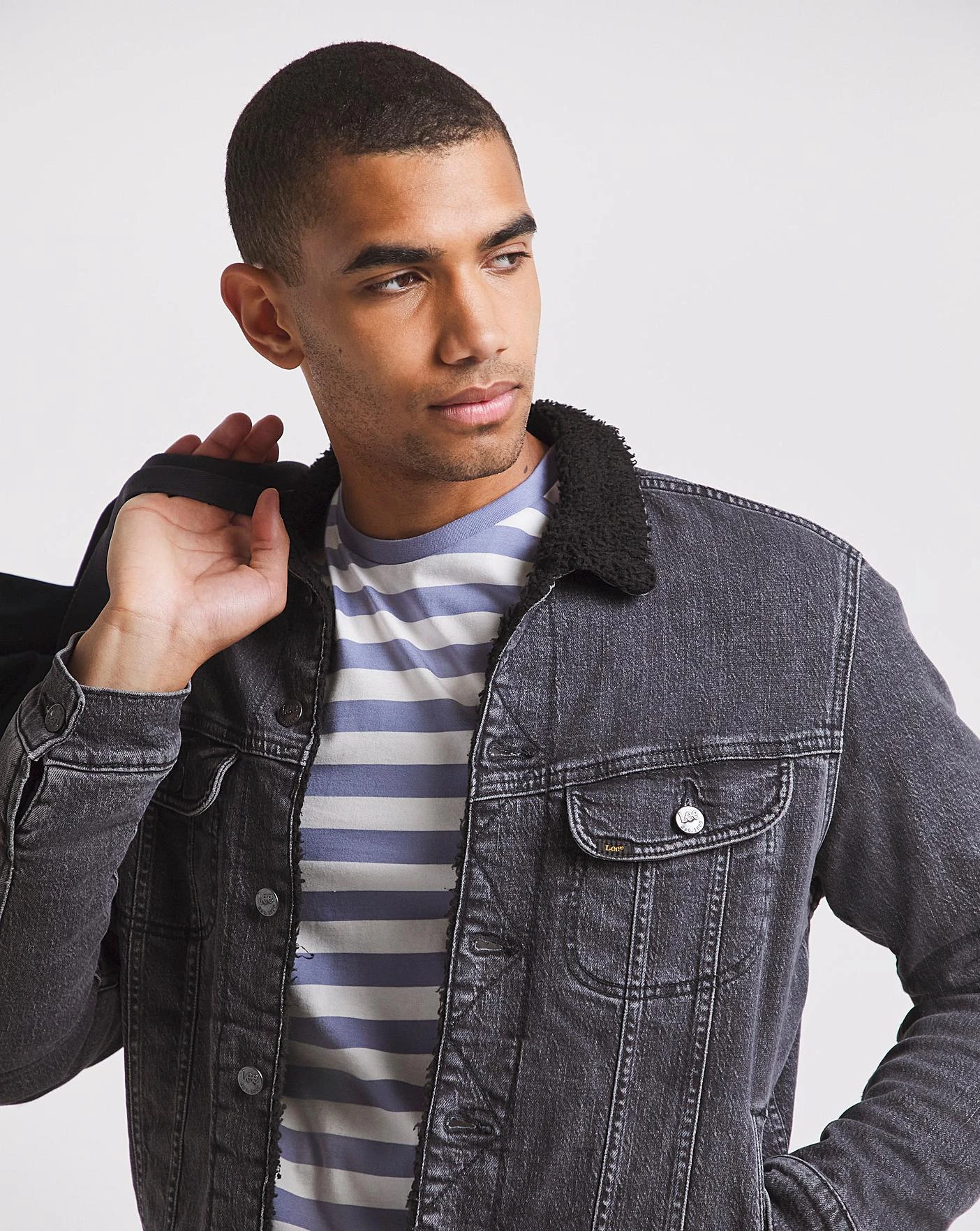Lee Sherpa Jacket in the colour Gravelstone. This washed denim jacket is a great way to layer up this season, with long sleeves, a button down fastening, 2 chest pockets and sherpa collar detailing. Both stylish and comfortable this is ideal for styling over all your favourite Tee’s for an everyday look.