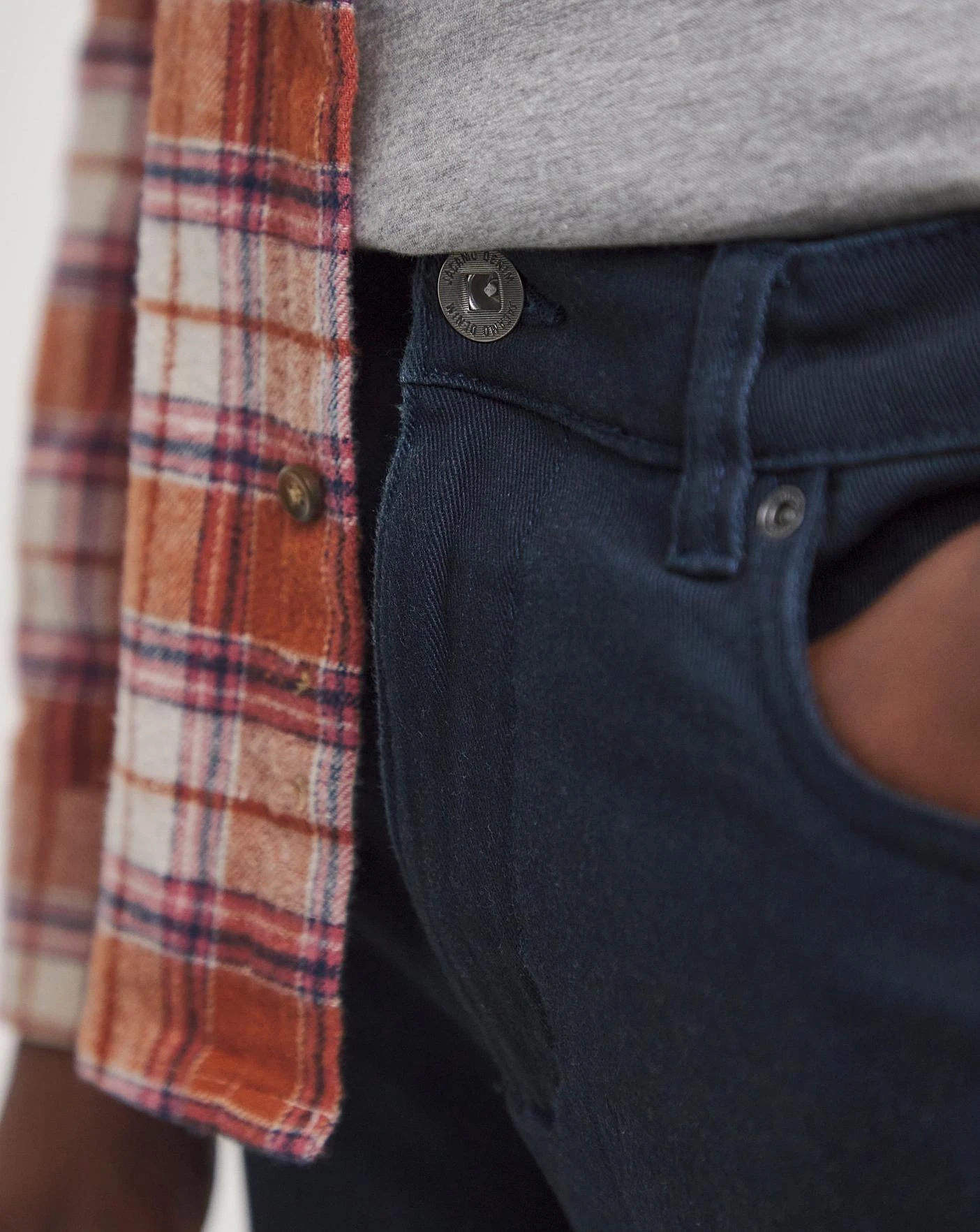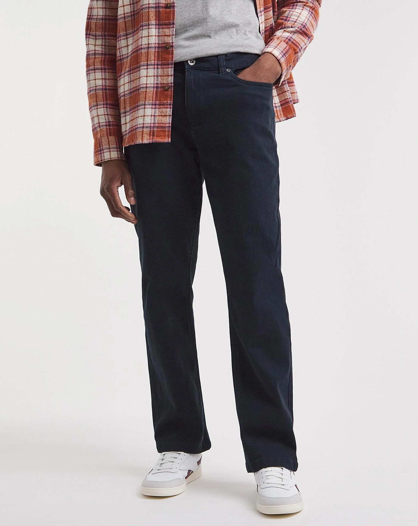 Stretch fit Navy gabardine jeans with two front and two rear pockets and a zip/button fly fasten.