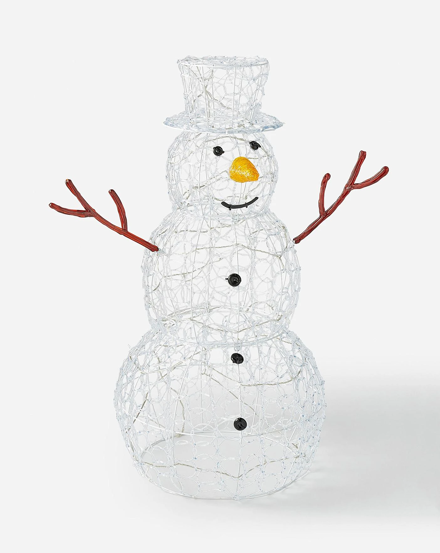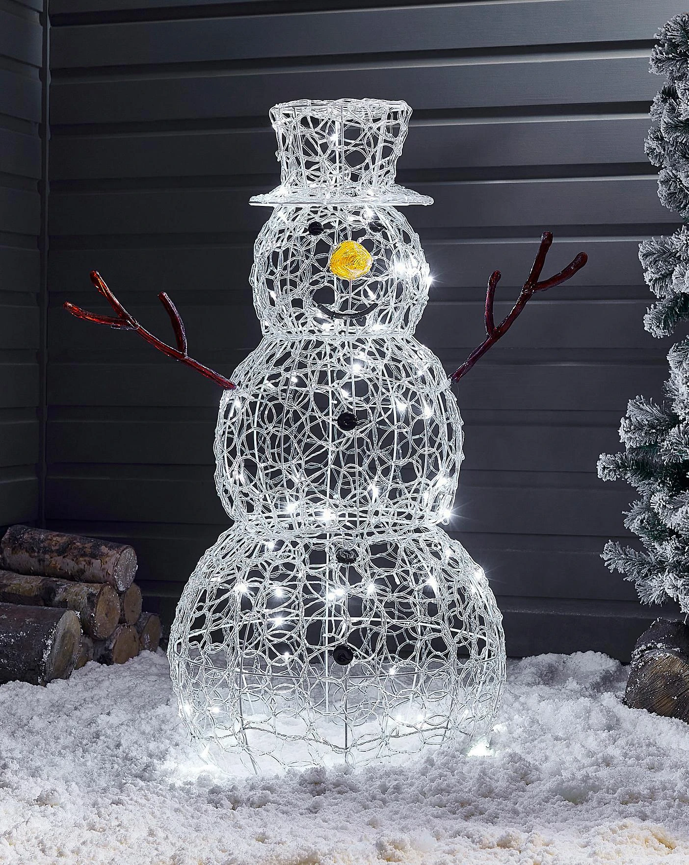90CM Tall soft acrylic Lit Snowman. With 80 White LEDs including 12 flashing lights to give it a twinkling effect. Includes 5M cable.