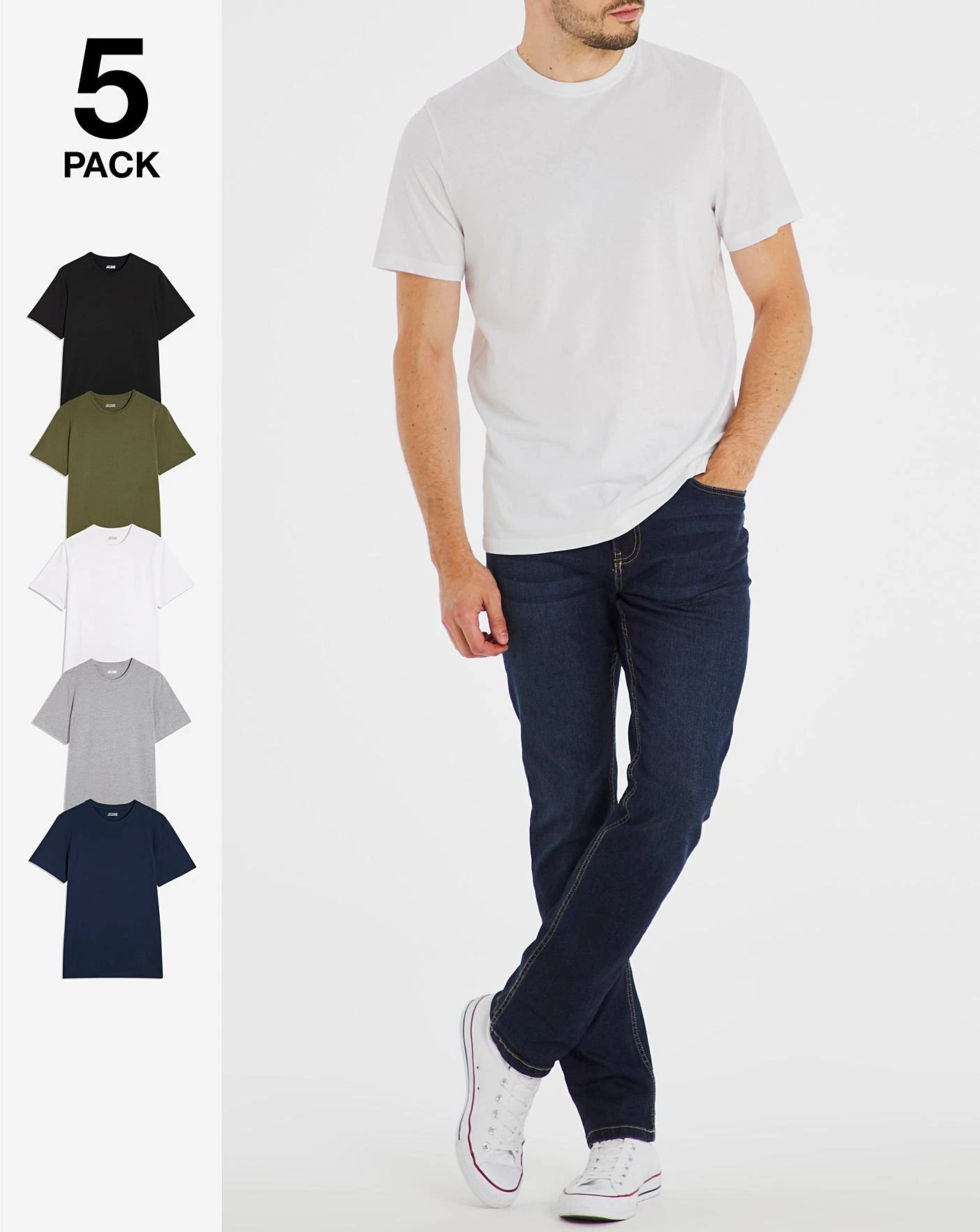 Pack of five short sleeve crew neck tees. Ideal for layering or lounging or just for a casual look with a pair of joggers or jeans. Sustainably sourced cotton.