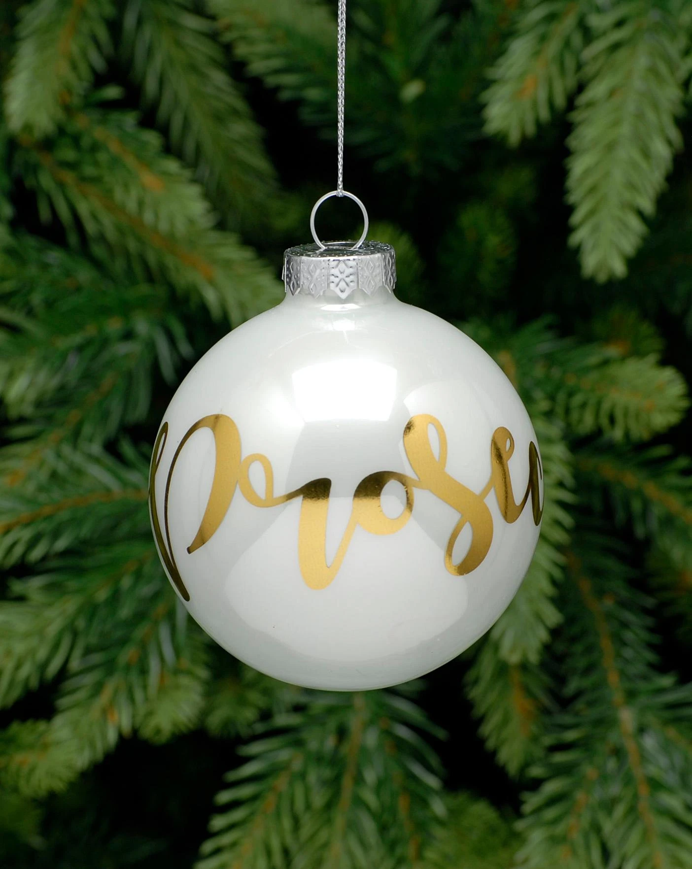 Give an original look to your Christmas tree with these mesmerising glass ‘Prosecco’ signed baubles. These 4 fabulous ornaments are perfect to produce a modern display harmoniously combining elegance and merriment.