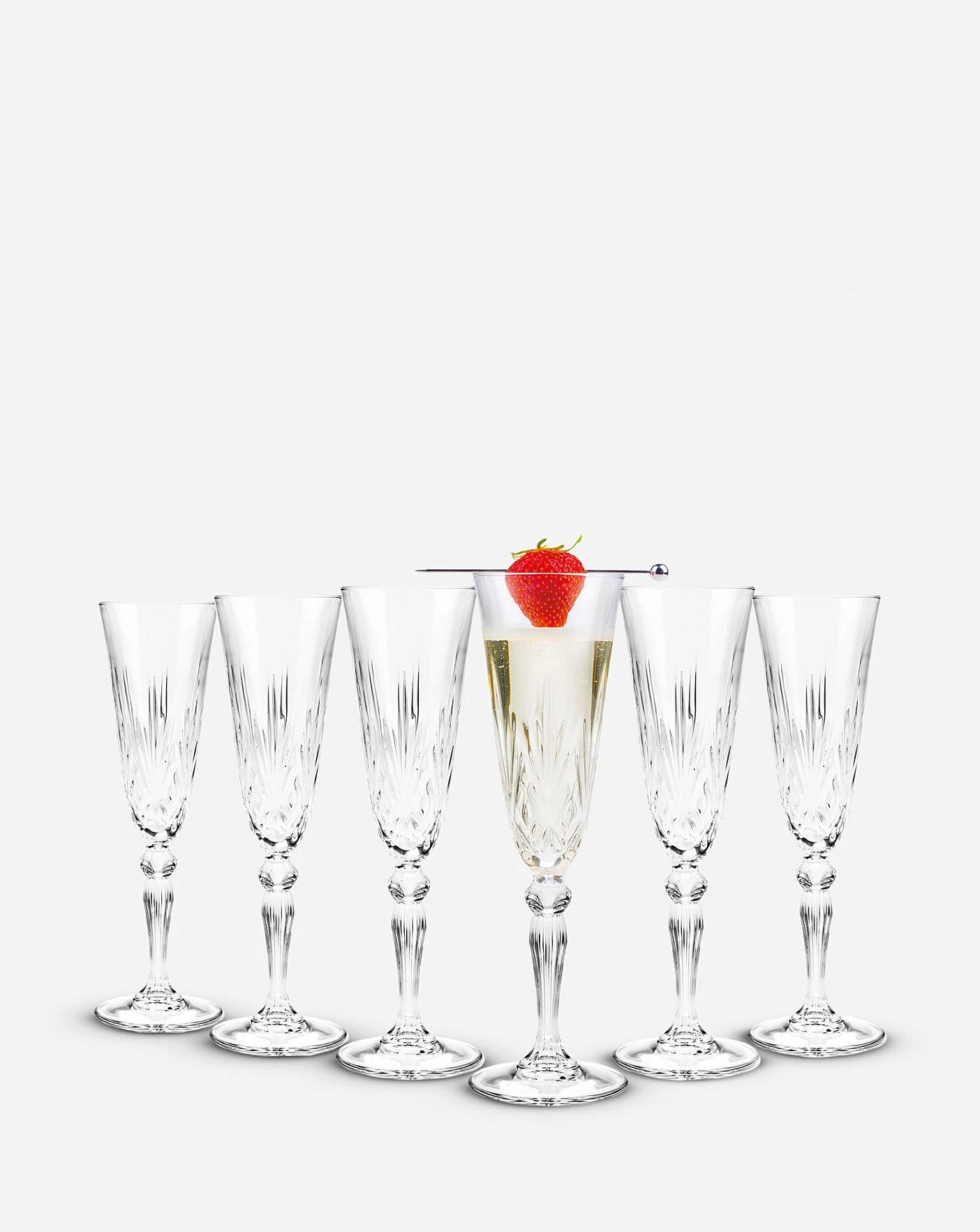 Expertly crafted in the heart of Italy, these RCR Champagne Flutes are the perfect accompaniment to your special celebrations. Finished in an intricate Melodia design, these flutes ooze elegance and sophistication, an ideal gift newlyweds and for new home owners. Developed in highest quality Luxion crystal, these glasses reflect light to create a dazzling gleaming effect. RCR Luxion crystal is proven to be dishwasher safe, ensuring a quick and simple clean.