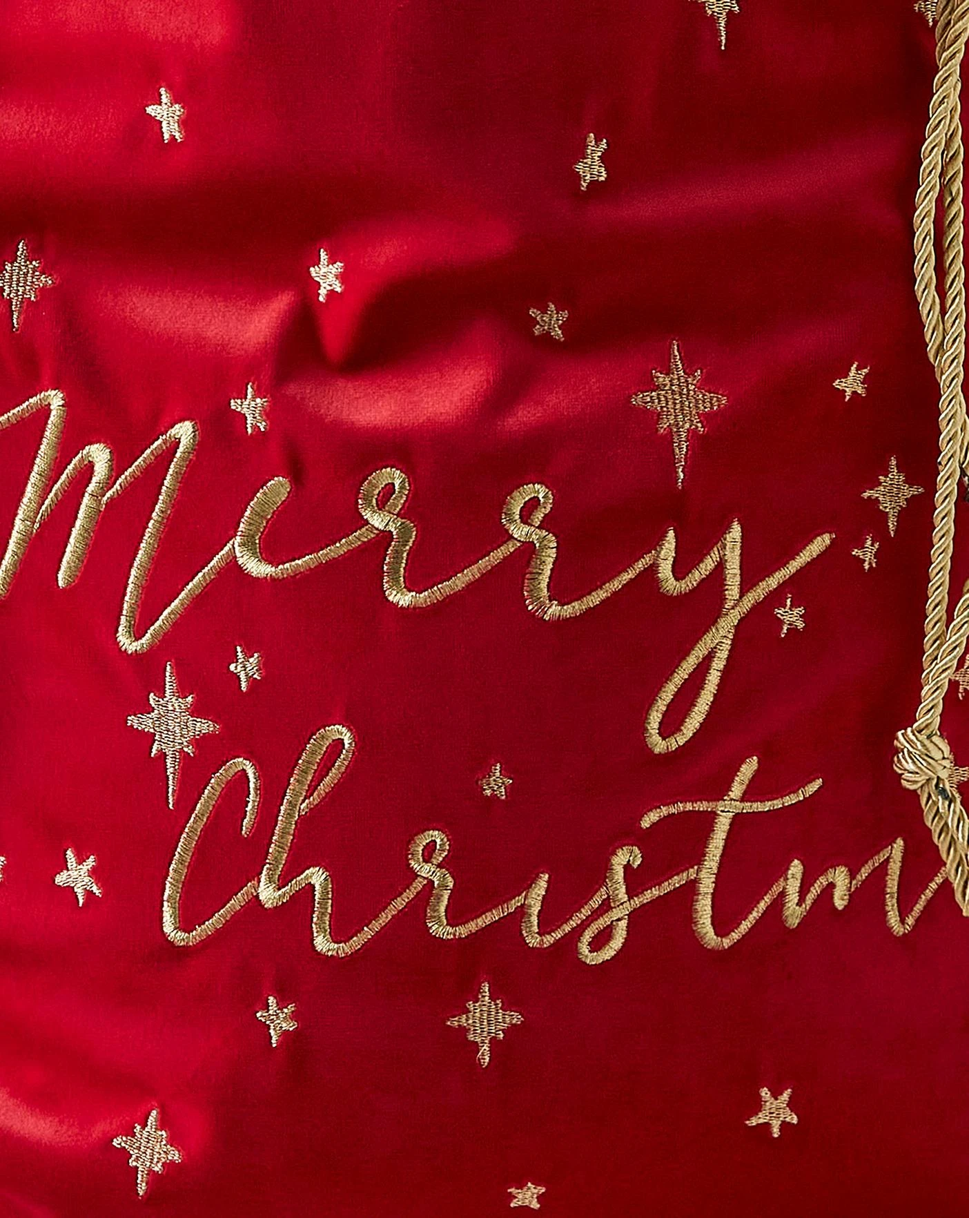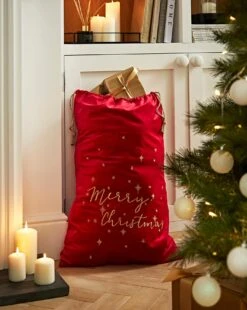 Red present sack made out of 100% polyester velvet. This product can be machine washed at 30 and can be tumble dried at a low temperature. 1 year manufacturer guarantee included.