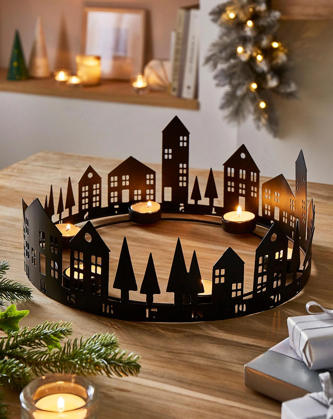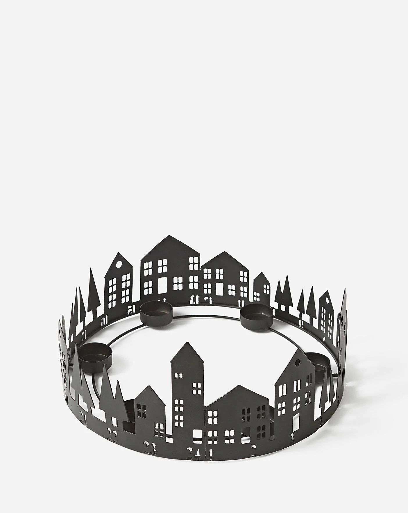 Ivyline round advent tealight centrepiece measures H15cm x W33cm x D33cm and is made of Steel. Indoor use only. Wipe clean with a damp cloth.
