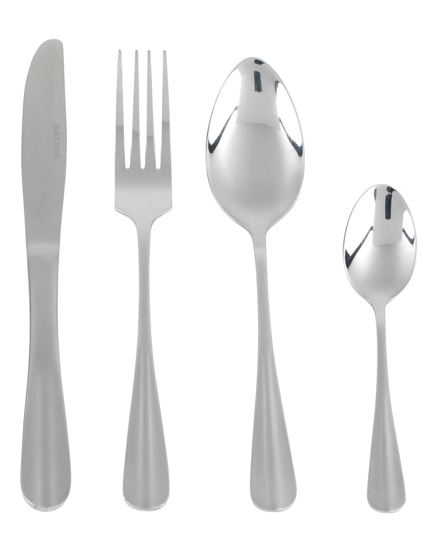 Whether you are starting a collection for a new home or replacing your existing cutlery, this Newbury set is a great way to begin. Make your table more appealing with this luxurious Salter Newbury cutlery, inspired by elegant British dining. Ideal as a starter set or for refreshing your dinnerware, this 24-piece set contains 6 knives, 6 forks, 6 tablespoons and 6 teaspoons made from mirror polished stainless steel, which is guaranteed to impress your guests. Made from high-quality stainless steel, this Elegance cutlery set is durable, strong and designed to enhance your dining experience. Practical and durable, this set is perfect for everyday use, while the gorgeous, classic style is sure to give your existing tableware a graceful new look. With a timeless look, this beautiful cutlery will match most tableware schemes, and will continue to last as fashions change. Finely balanced with a pleasant weight, this cutlery is delightful to hold and use, fitting nicely in the hand.
