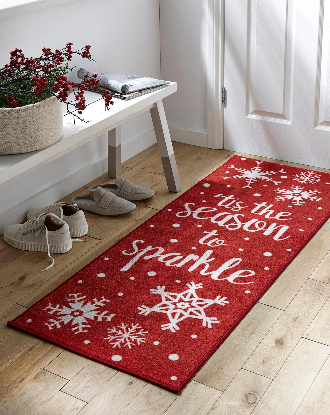 Fantastically festive design runner, ideal for use in hallways and other high traffic areas. With a soft Polyester pile that is produced from recycled materials. Featuring a latex backing to help prevent slippage.