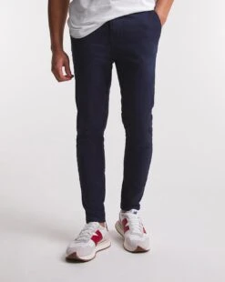 This skinny fit chino in navy is fresh and comfortable for the season. These chinos are a great fit, pair with a basic t-shirt or polo for any smart casual occasion.