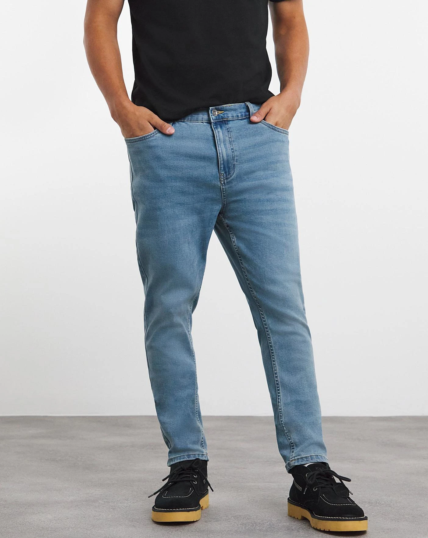 Jacamo skinny fit stretch jeans in light stonewash.