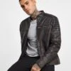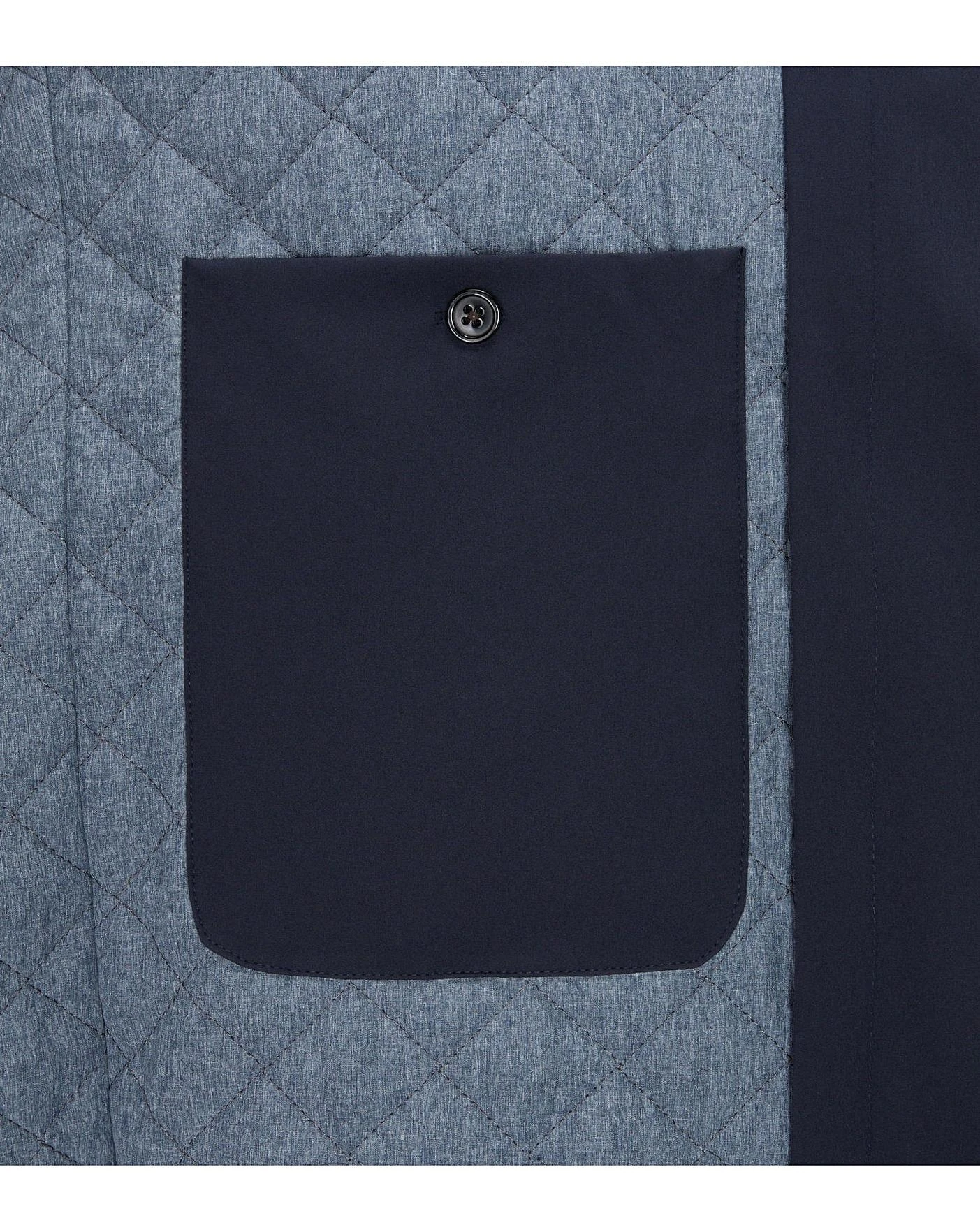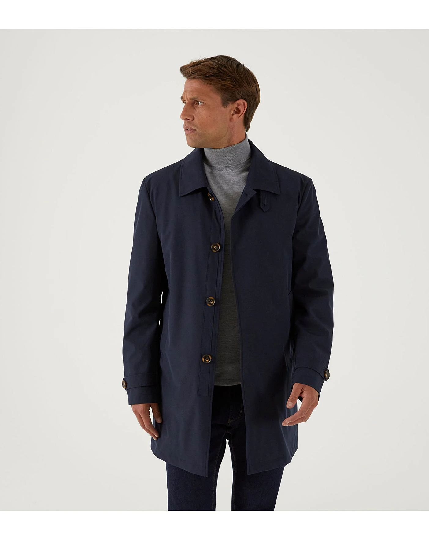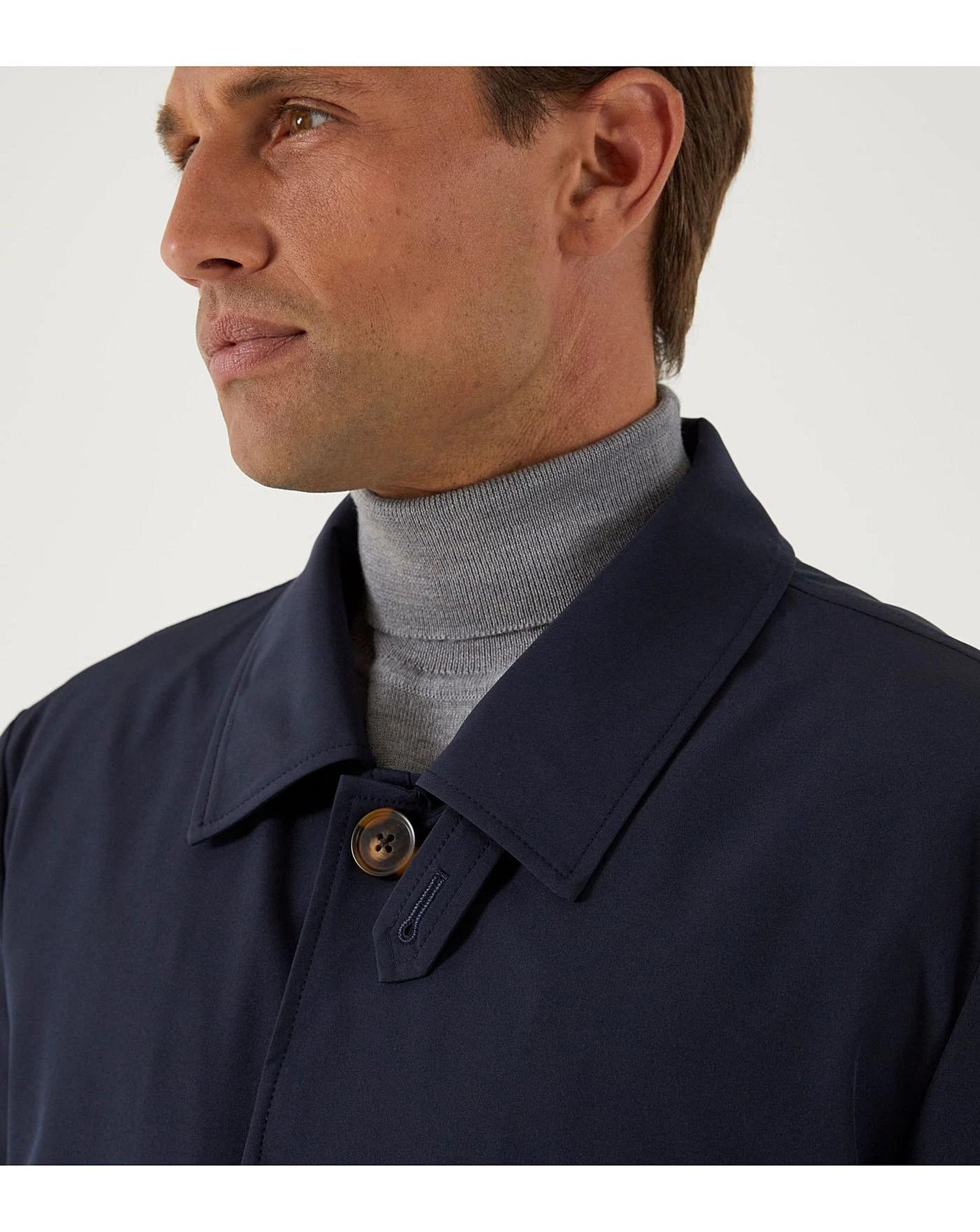 - Features include stretch fabric, side slant pockets, button fastening inside pocket, button fastening cuff and throat tab and quilted lining.Centre back length = 98.5cm on size medium.