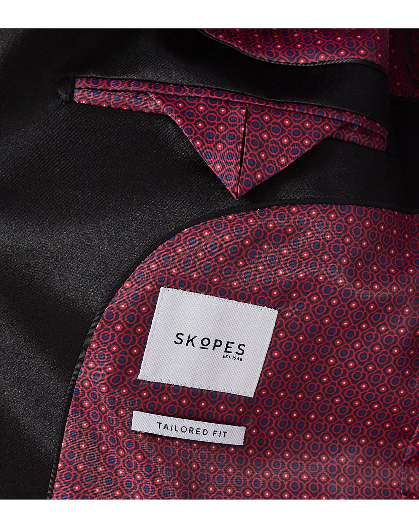- Features include satin shawl lapel, straight flap pockets, cloth covered buttons, contrast geometric print lining with twin side vents.