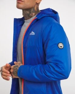Step into the great outdoors in style with the blue Snowdonia padded jacket. The bold contrasting red zippers are not only fashionable but functional. Meaning you can have all your essential items zipped securely away while you go up on your next hike! It uses a water resistant external fabric, has insulating properties and a full zip fastening as well as zip pockets. A great choice to wear for any outdoors adventure.