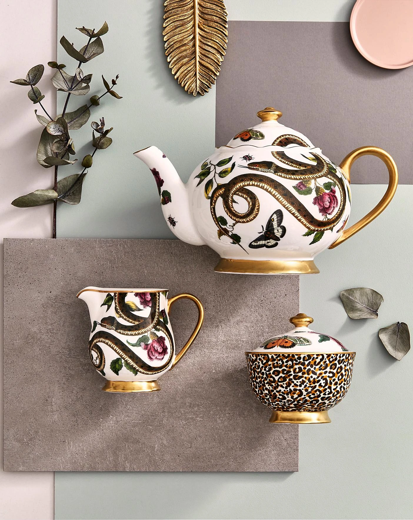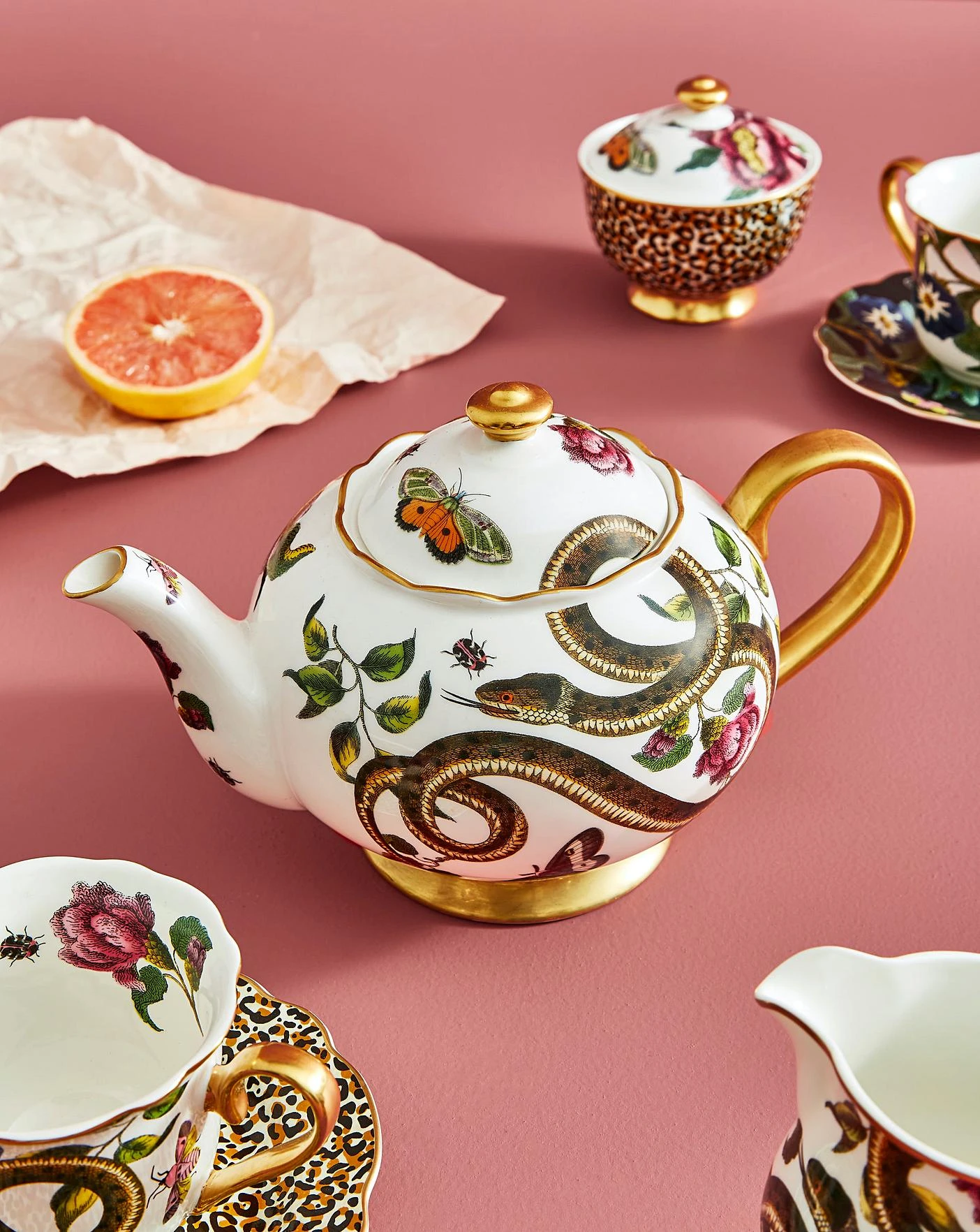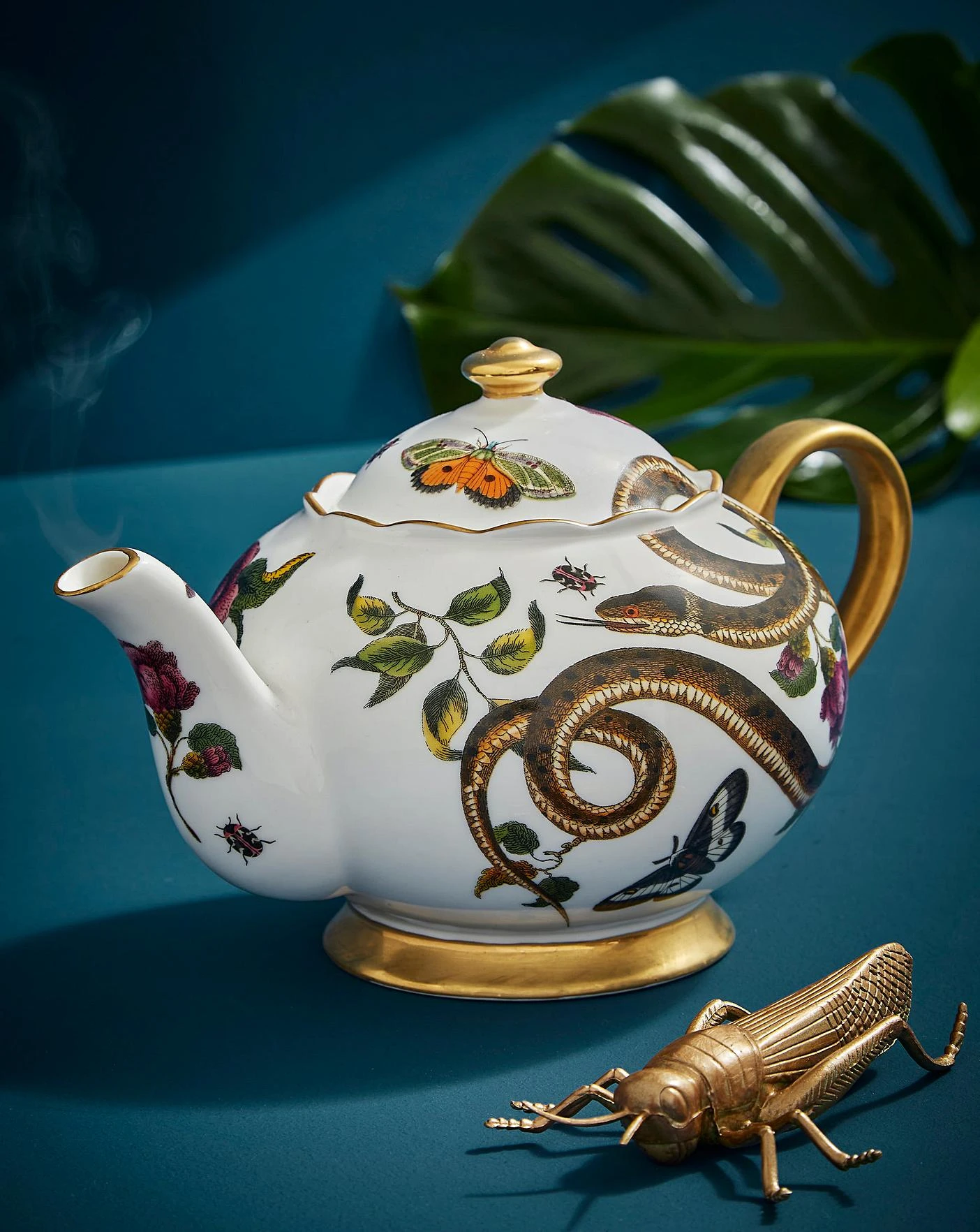 The Creatures of Curiosity Teapot is the perfect way to add a touch of Spode to your afternoon tea. Featuring exotic snakes, striking butterflies and wondrous florals that are as beautiful as they are edgy – if you’re looking to impress your guests, then you can’t go wrong with this on-trend teapot. Product Specifications: Capacity: 37fl oz / 1.1l, Dishwasher Safe: No, Microwave Safe: No, Freezer Safe: No, Oven Safe: No, Care Instructions: Hand wash only, Material: Fine China