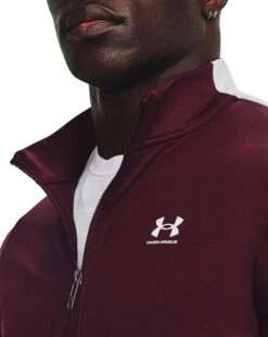 Men’s UA Tricot Jacket. Everyone needs a tracksuit. Period. They keep your muscles warmed up and ready to move. The textured fabric even gives you added breathability when the temps start to rise. Smooth tricot knit exterior with a brushed interior for soft comfort & warmth. Material wicks sweat & dries really fast. Open hand pockets